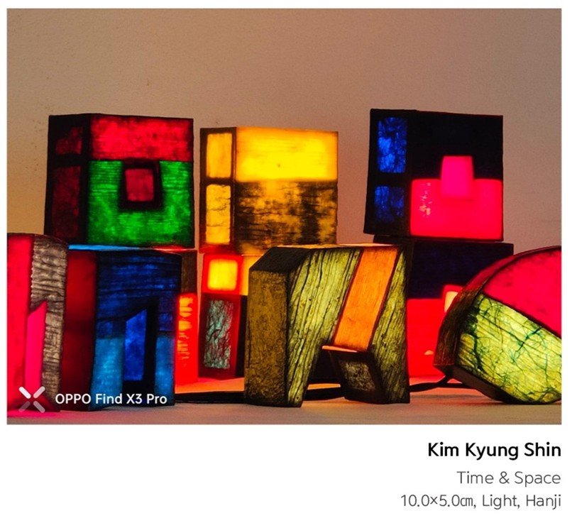 Ein Beispiel für Kim Kyung-Shins Kunst ist das Werk „Time & Space“ (10,0 x 5,0 cm, Licht, Hanji),