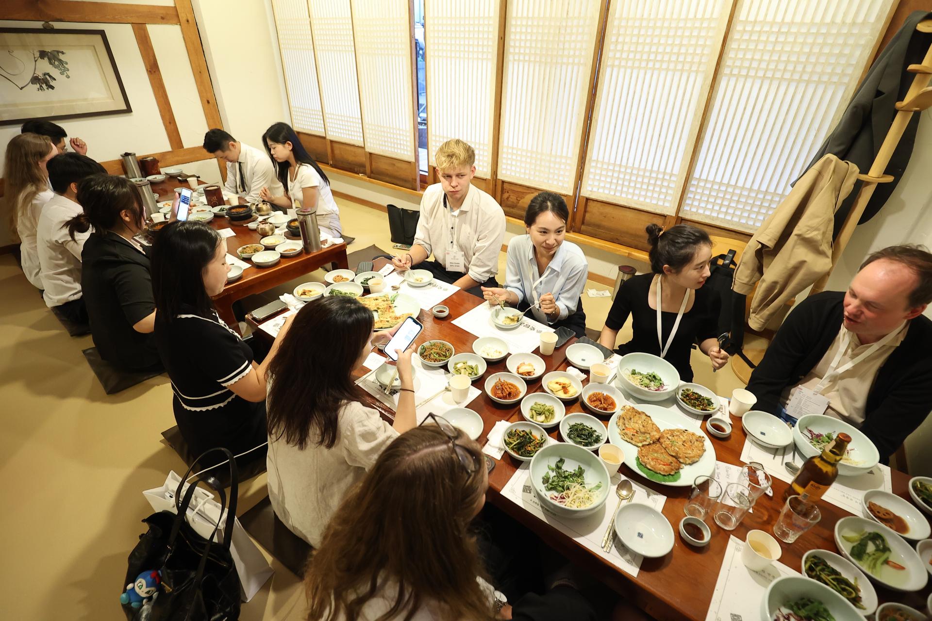 Am Abend ging es gemeinsam in ein traditionelles koreanisches Restaurant in der Nähe, wo bei einem stimmungsvollen Abendessen die Gespräche weitergeführt wurden. Nach einer kurzen Pause folgten weitere Arbeitsgruppen-Sessions im Hotel.