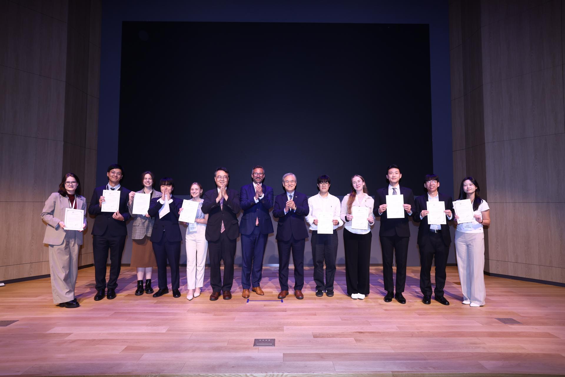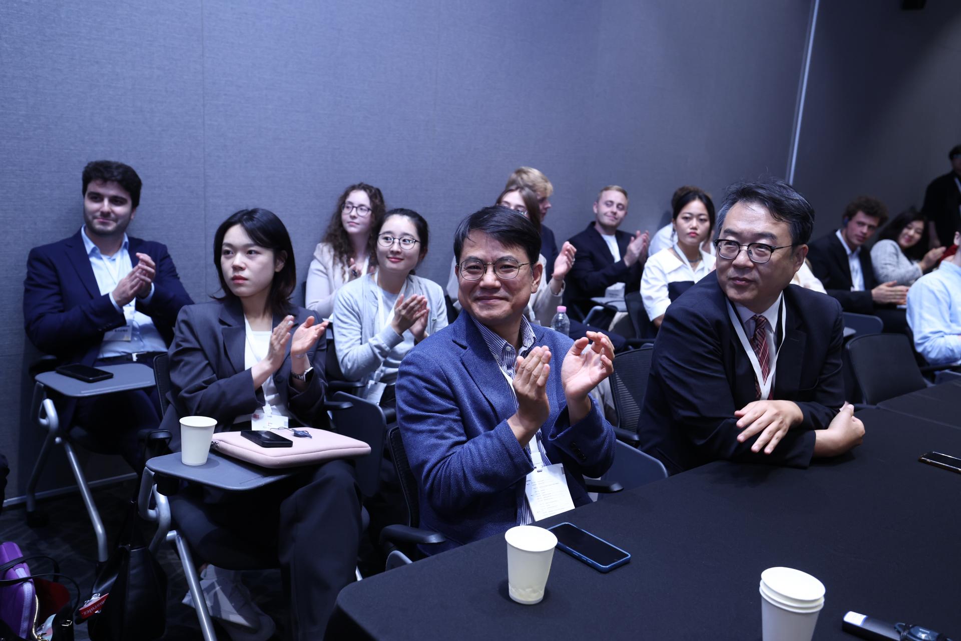 Alle Redebeiträge waren prägnant, klar und überzeugend – und zeigten, wie gründlich die Themen in den vergangenen Tagen ausgearbeitet worden waren. Jede Präsentation spiegelte nicht nur intensive Vorbereitung wider, sondern auch die Fähigkeit, komplexe Inhalte verständlich und eindrucksvoll darzustellen. Jede Gruppe hatte genau fünf Minuten Zeit, vorgestellt von jeweils einer/m deutschen und einer/m koreanischen Teilnehmenden.